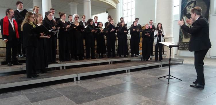 De eerste uitvoering was gisteren in Vlissingen waarna het koor in de nacht terugreisde naar Amsterdam om vandaag in Noordwijk op treden. De volgende concerten zijn in Amsterdam (maandag), Leiden (woensdag), Nijmegen, Dalfsen en Utrecht (Domkerk). Hieronder wat foto’s, video volgt later.