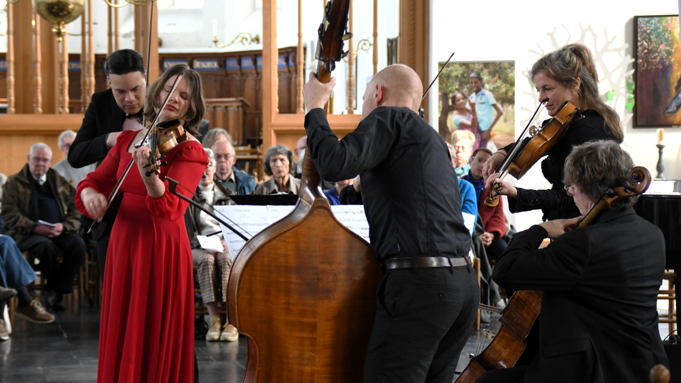 De grote klasse en vooral het enthousiasme van Ensemble 4 Seasons was aanstekelijk, de uitleg van ensembleleider Christiaan van Hemert vermakelijk. Hij mocht vertellen dat de beide composities niets met elkaar te maken hebben. Behalve dan de beide geweldige uitvoeringen door Ensemble 4 Seasons met onder anderen Emmy Storms op viool, Margreet Markerink op piano Clavecimbel, Andrea Bentivoglio op viool, Berdien Vrijland op altviool, Nitzan Laster op cello, Daniël Lehmann op contrabas en op viool en gitaar/bandoneon/artistieke leiding.